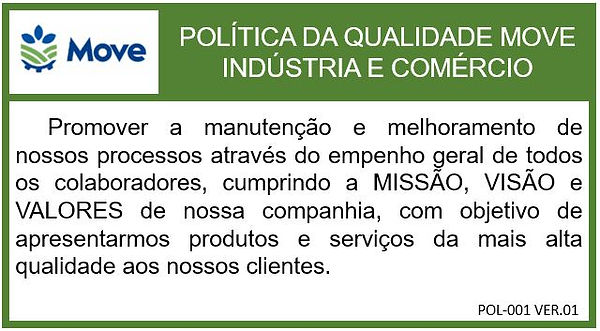 A empresa MOVE surge no ano de 2015, com o objetivo de atender e suprir a demanda existente no mercado do agronegócio. Com uma visão técnica e produtos de alta performance, a busca constante em apresentar custo benefício aos seus clientes, empregando em nossos produtos matéria-prima e processos da mais alta qualidade, bem como seu controle de qualidade rigoroso. Também destacamos a mais alta importância na qualidade do atendimento e suporte técnico.